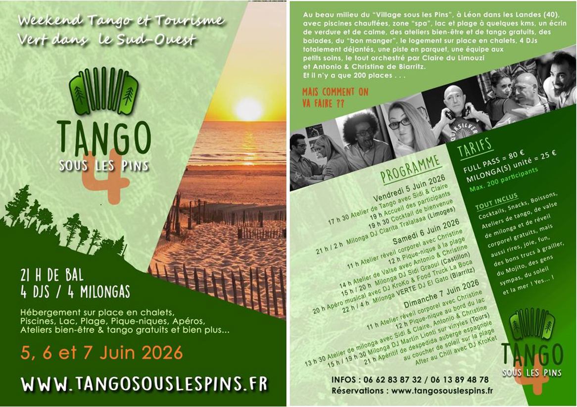 Notre évènement Tango sous les Pins n'étant pas lié à l'hébergement aux Villages sous les Pins,