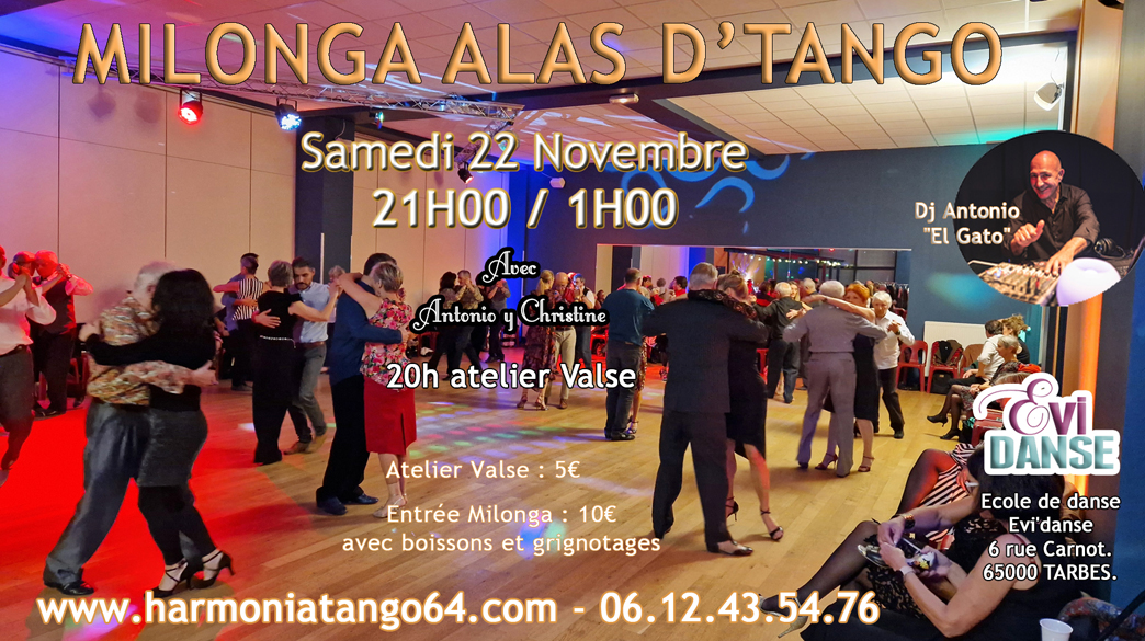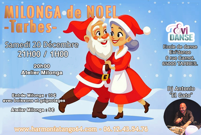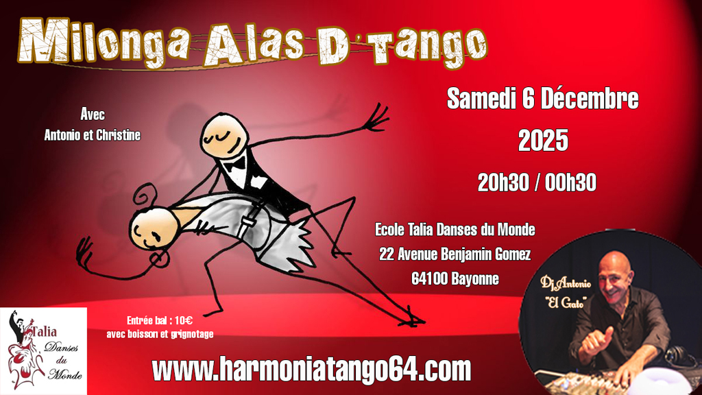- Par mail ou téléphone au 06.62.83.87.32 / harmoniatango64@gmail.com